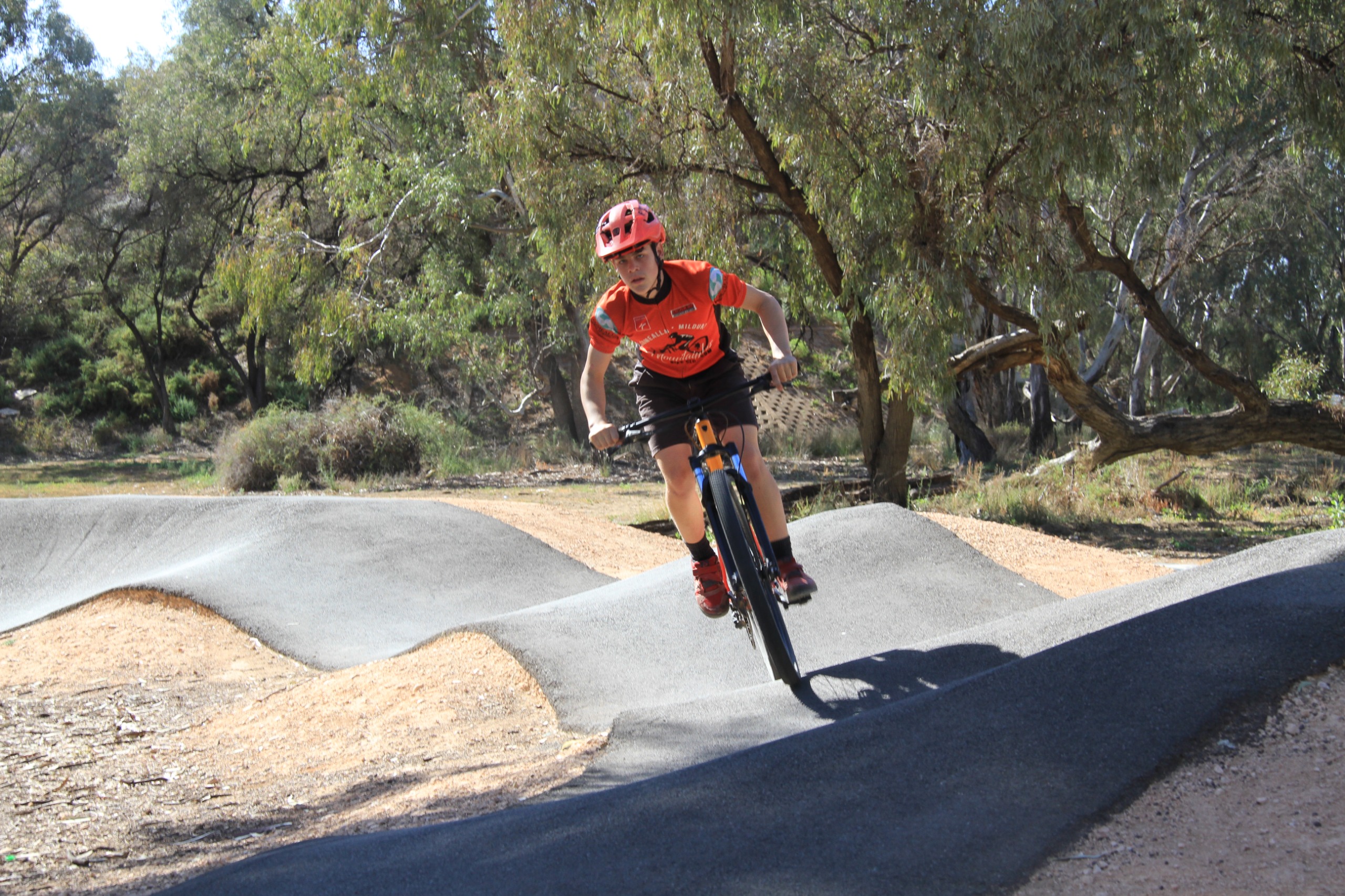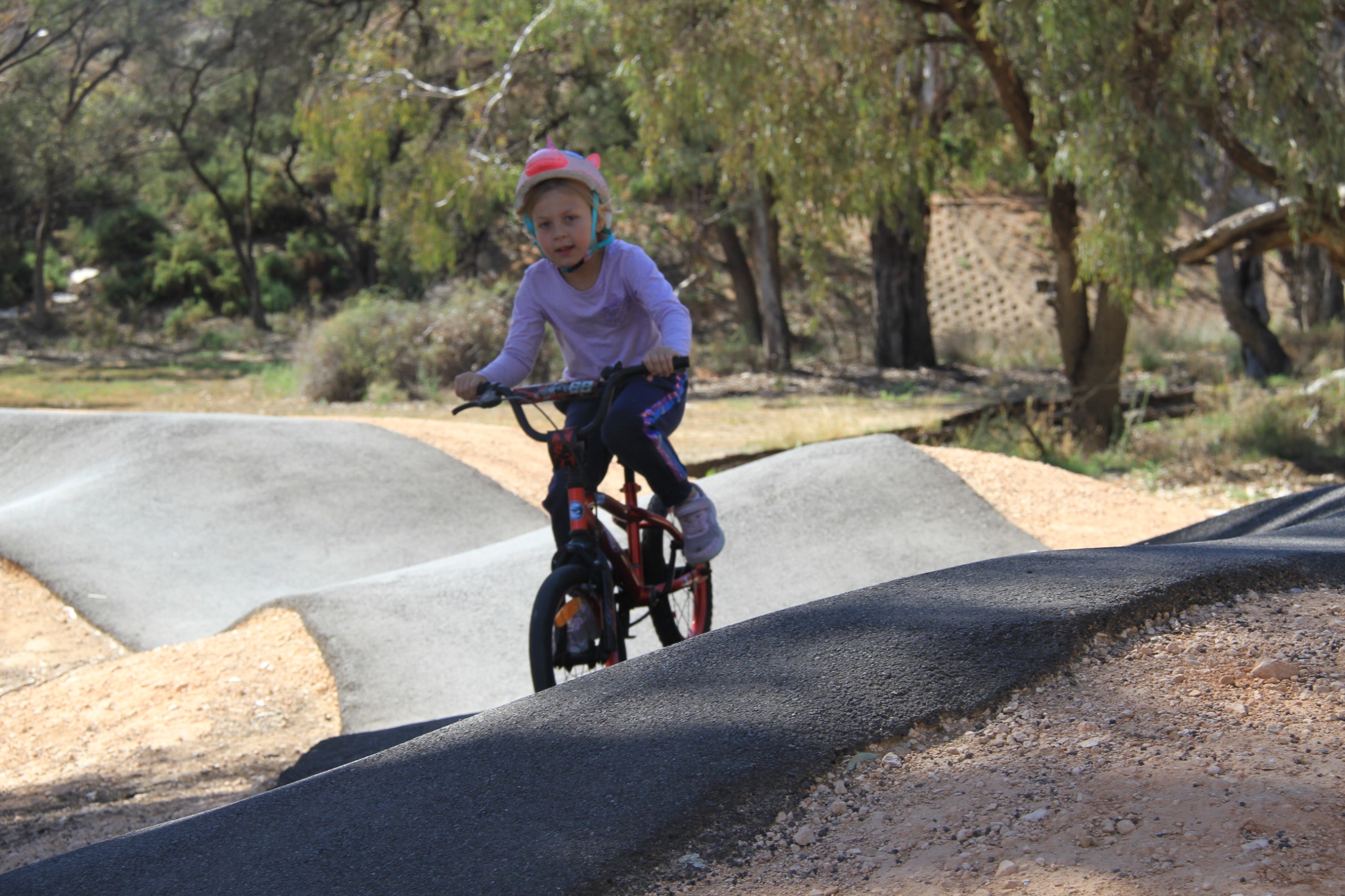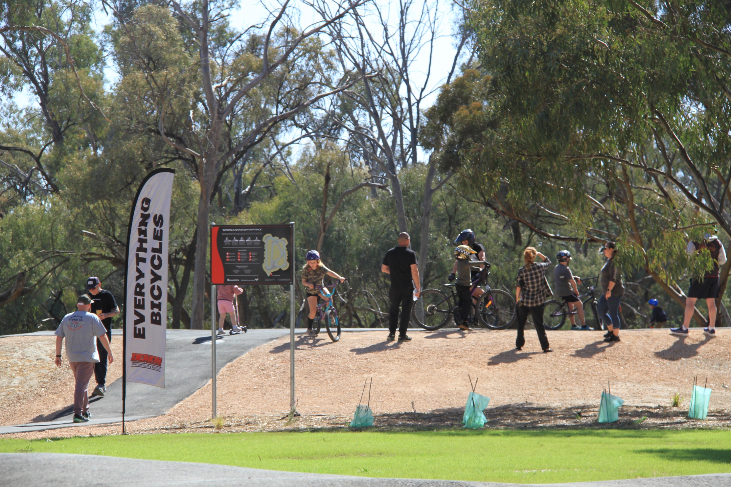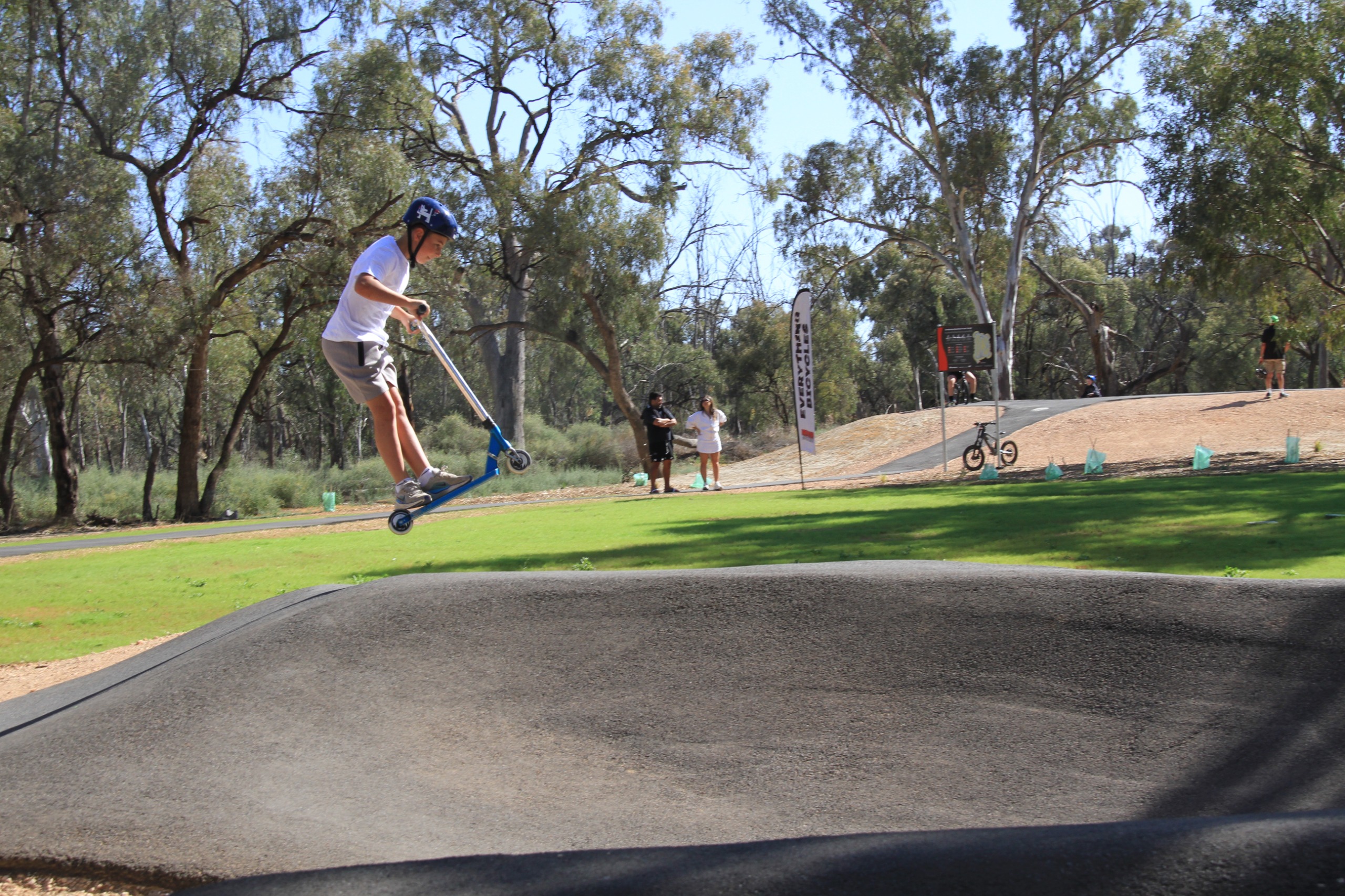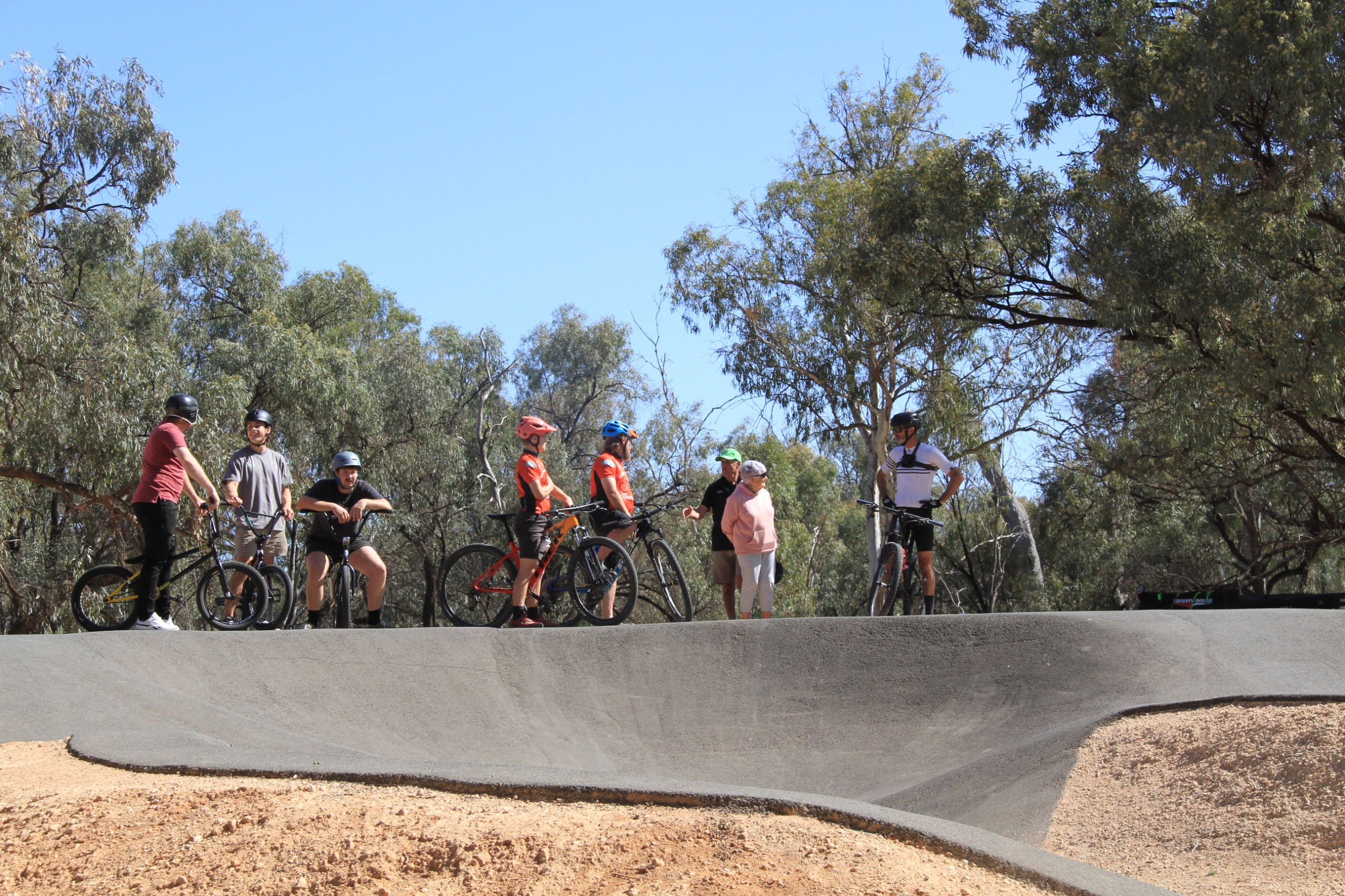 Works commenced on stage 1 in November 2021, with the construction of a new sealed Pump Track at the Buronga Riverfront, west of the George Chaffey Bridge near the Discovery Caravan Park. The track is around 150m in length and has created a family friendly environment for the community to enjoy, whilst challenging their varying levels of skill through rollers and berms.
