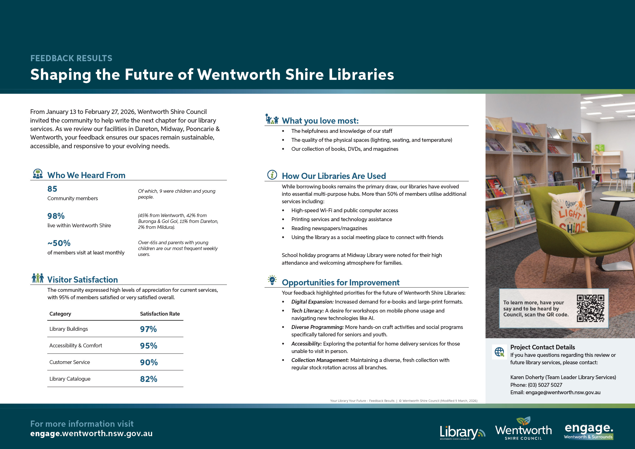 Community would like to see more crafts and hands on activities for aged and young people.